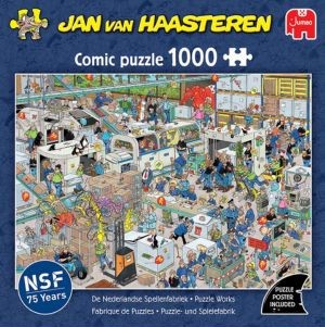 Ter gelegenheid van dit bijzondere jubileum heeft Studio Jan van Haasteren een puzzel getekend, waarin het huidige productieproces van de fabriek centraal staat. Hopelijk verloopt het in de echte spellenfabriek iets minder chaotisch dan in deze puzzelplaat.