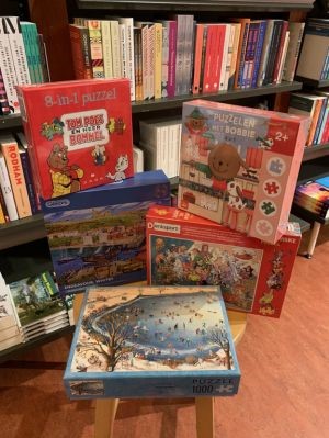 De winkel ligt vol, ook met veel nieuwe titels. We pakken al stapels Sinterklaascadeaus in. Veel mensen weten hun weg naar de boekhandel te vinden; de gezellige drukte in deze tijd van het jaar is altijd weer genieten.