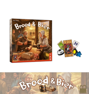 Brood en Bier is een strategisch spel voor 2 spelers. Door kaarten te spelen oogst je grondstoffen, verbeter je je dorp en verkoop je bier en brood. Elke kaart kan op drie verschillende manieren worden gebruikt. Schuif de kaart boven het speelbord voor een oogst, onder het speelbord voor een uitbreiding van het dorp of leg de kaart af om bier en brood te verkopen.